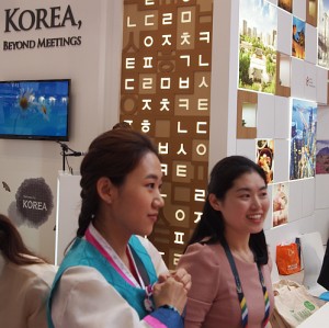 The Seoul Convention Bureau, was at IMEX 2014 promoting the city as a prime venue for meetings, conventions and exhibitions. It presented itself as being able to provide multilayered support to foreign and domestic event planners choosing Seoul to host their conference, and acts as an information service for business tourists and the media on Seoul’s conventions infrastructure. The attentive staff attracted visitors with calligraphy and spent time introducing the new three phase development of Seoul(Dongdaemun Design Plaza, Floating Island and Seoul Station Convention Center) to facilitate its ambitions to host large scale high impact events.